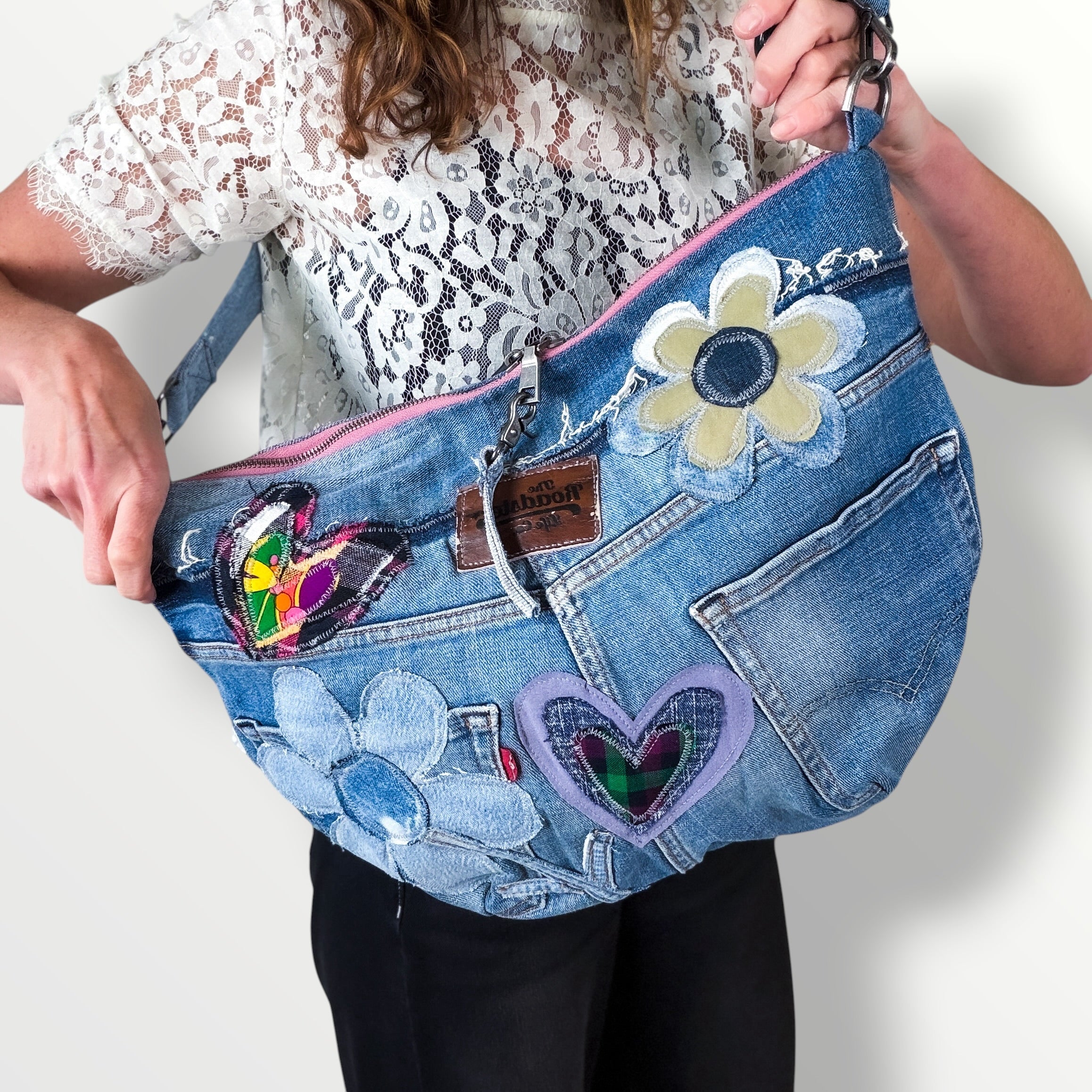 Check out our upcycled denim bag collection. Sling bags. Crossbody bags.