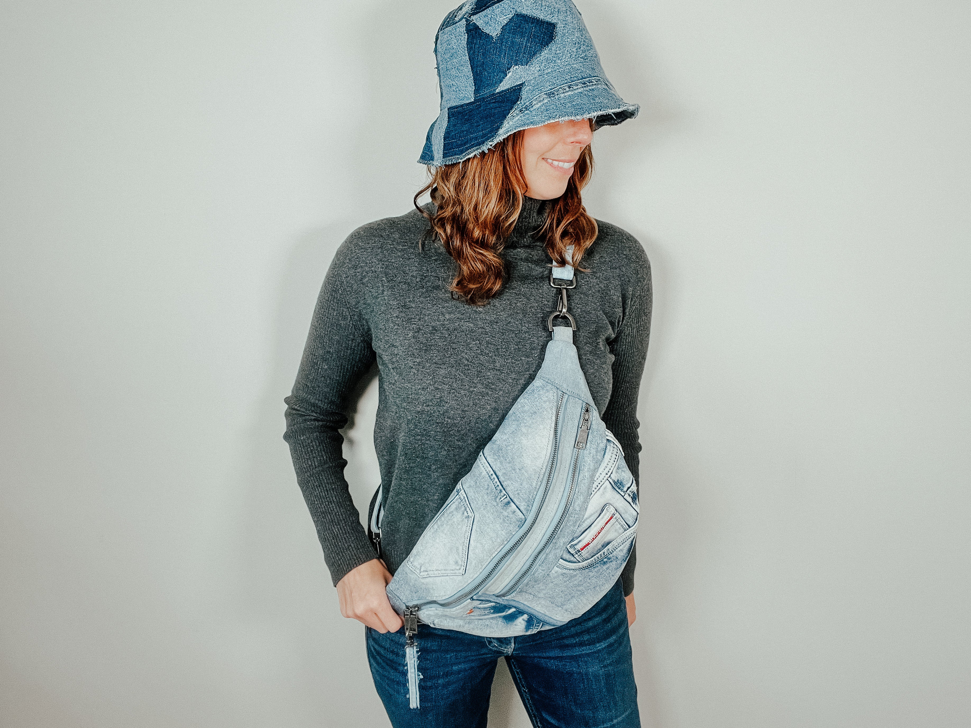 Check out our upcycled denim bag collection. Sling bags. Crossbody bags.
