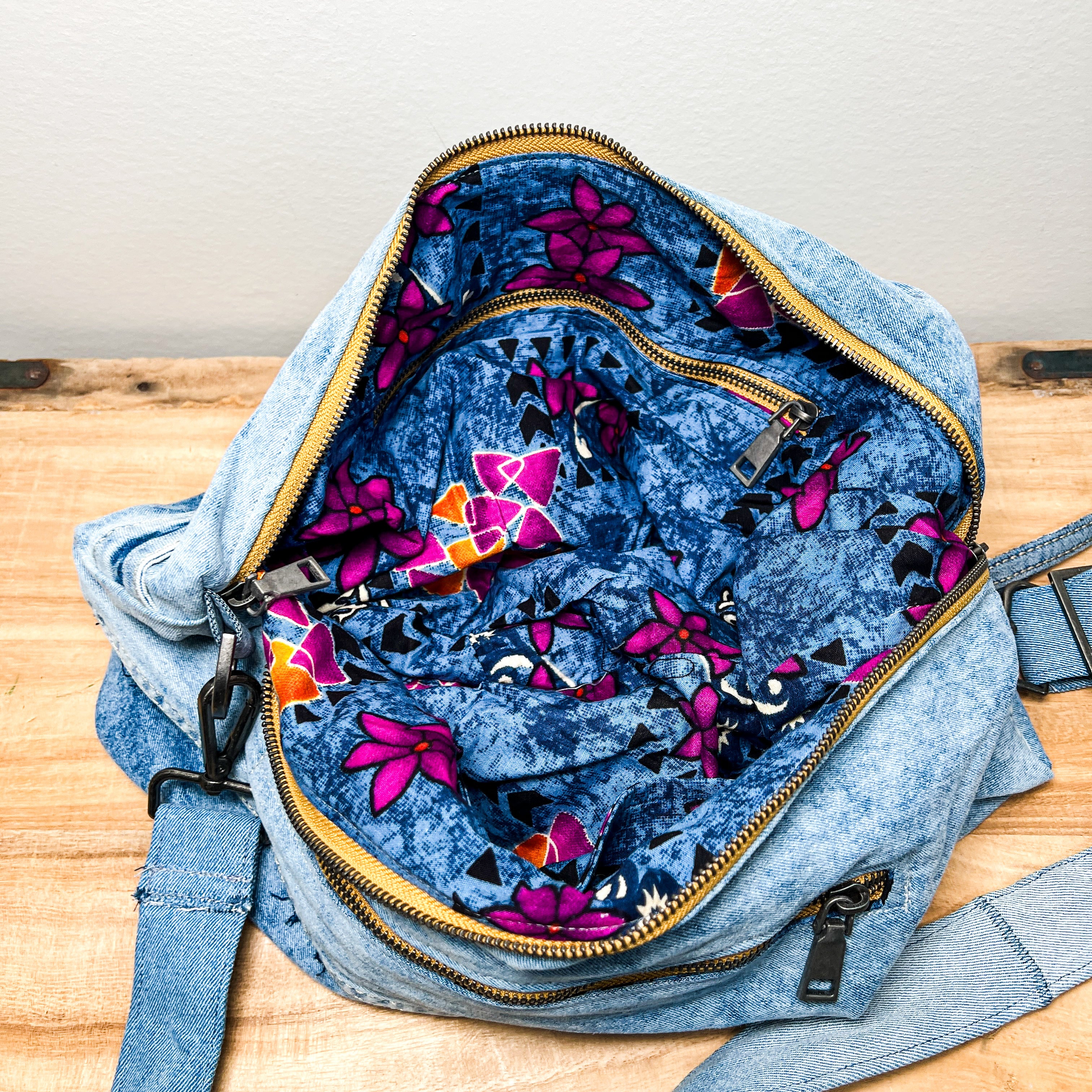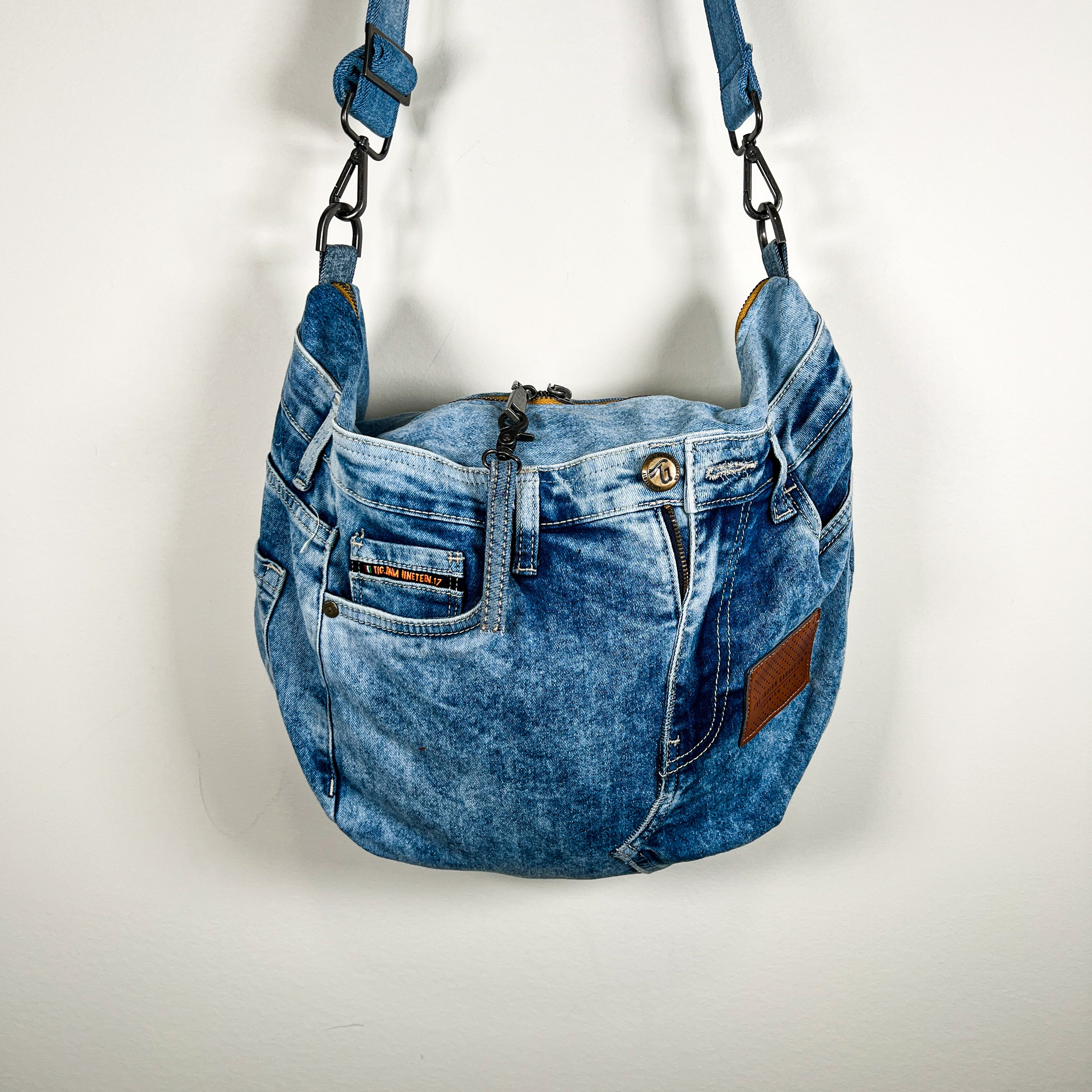 Carry it all—sustainably. This oversized, slouchy crossbody bag is handmade from reclaimed denim, giving secondhand textiles a fresh new life. Every bag is one-of-a-kind, reducing textile waste while keeping your look effortlessly cool.