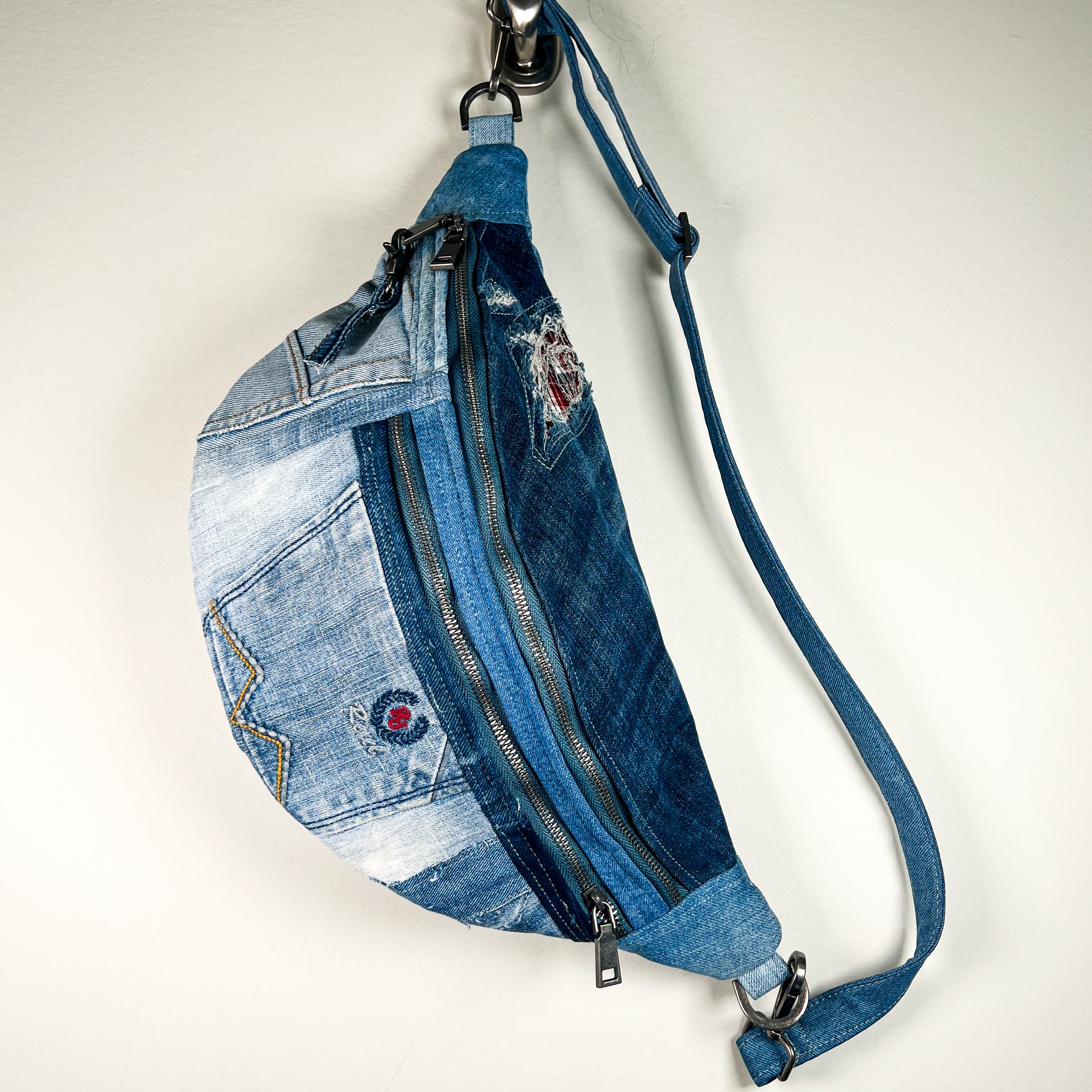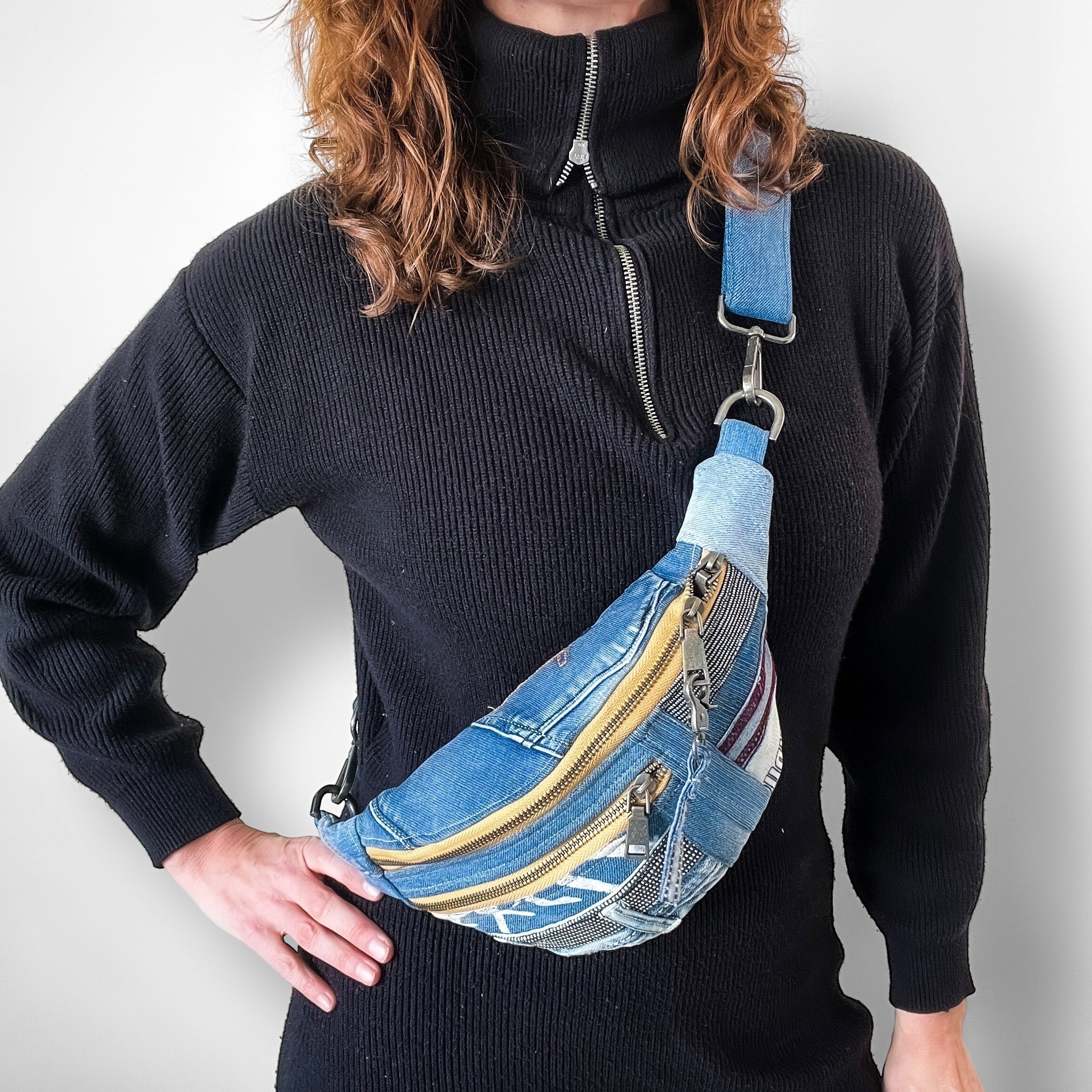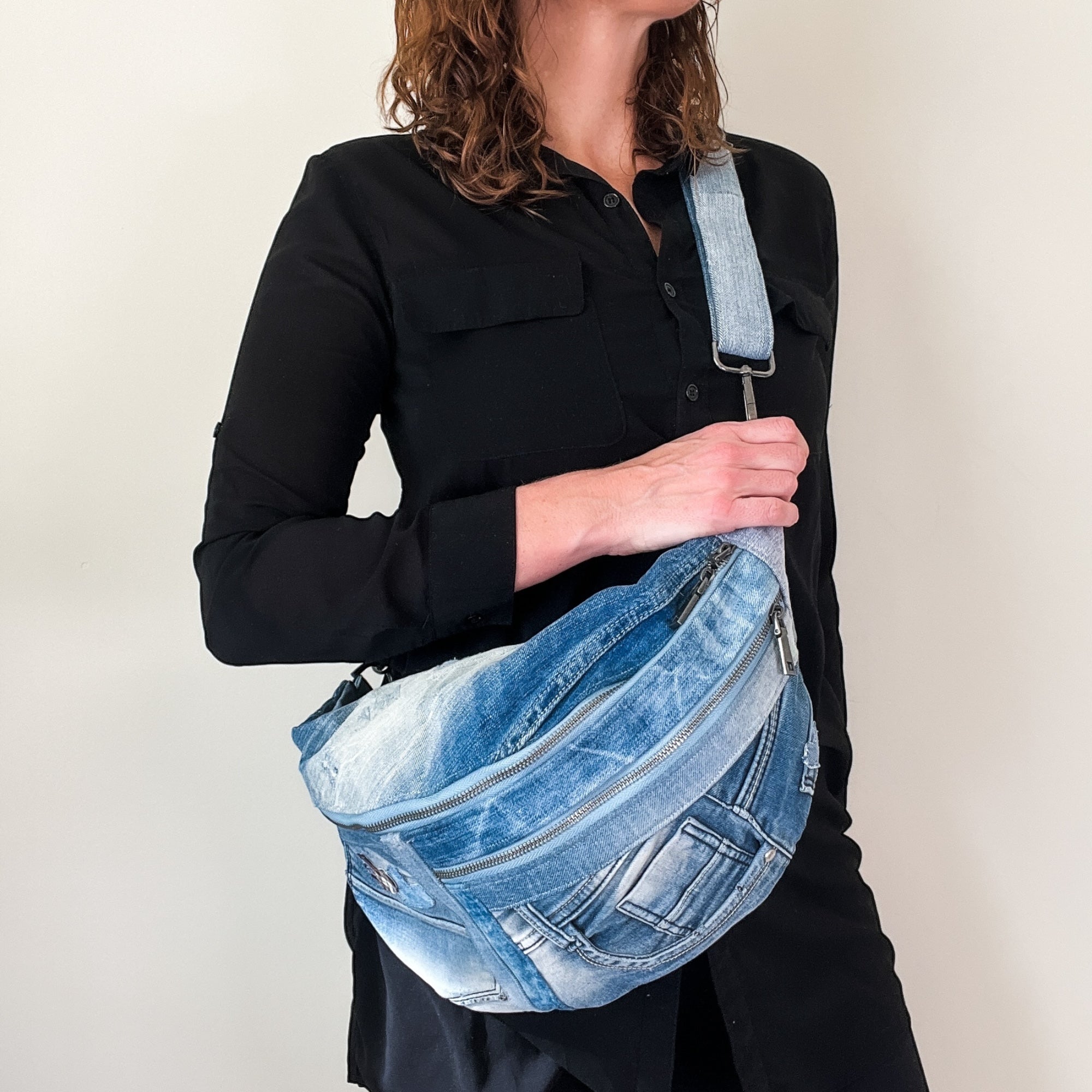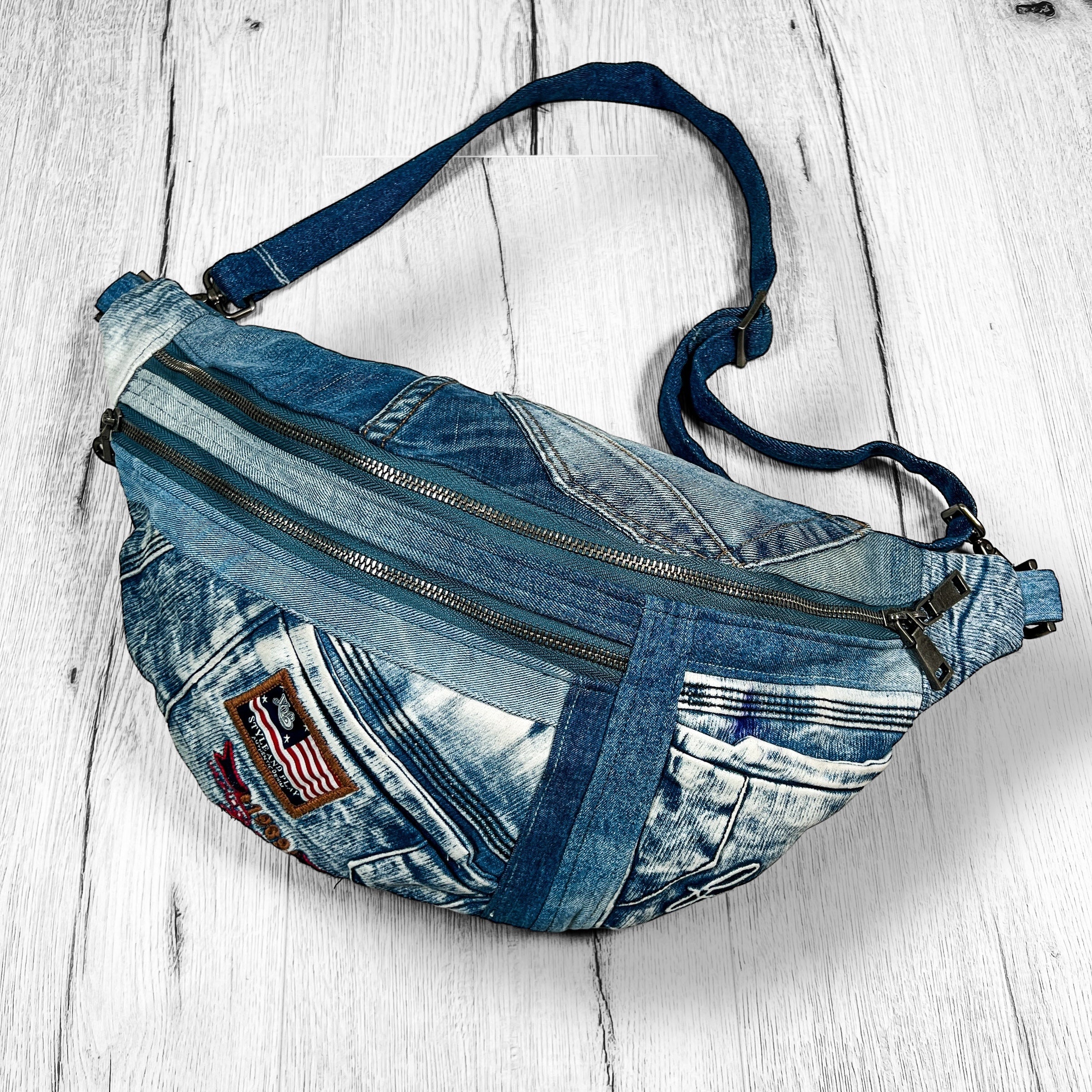 Check out our upcycled denim bag collection. Sling bags. Crossbody bags.