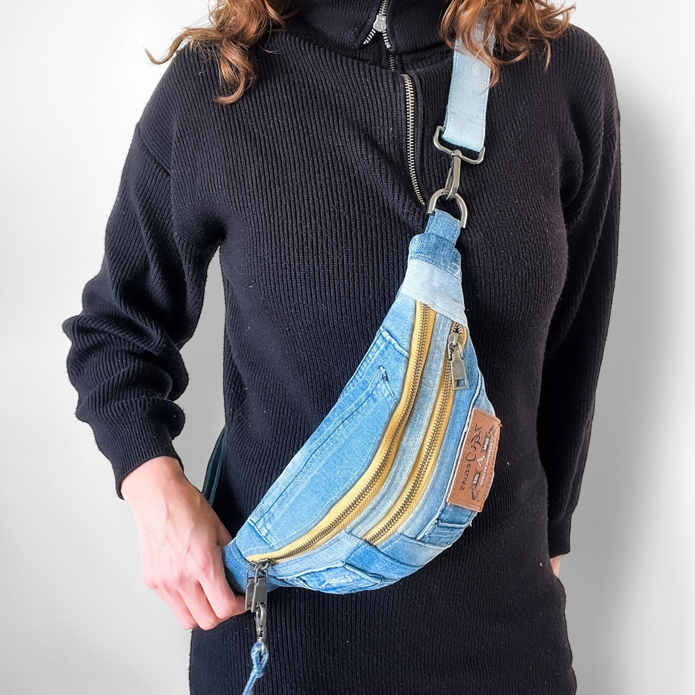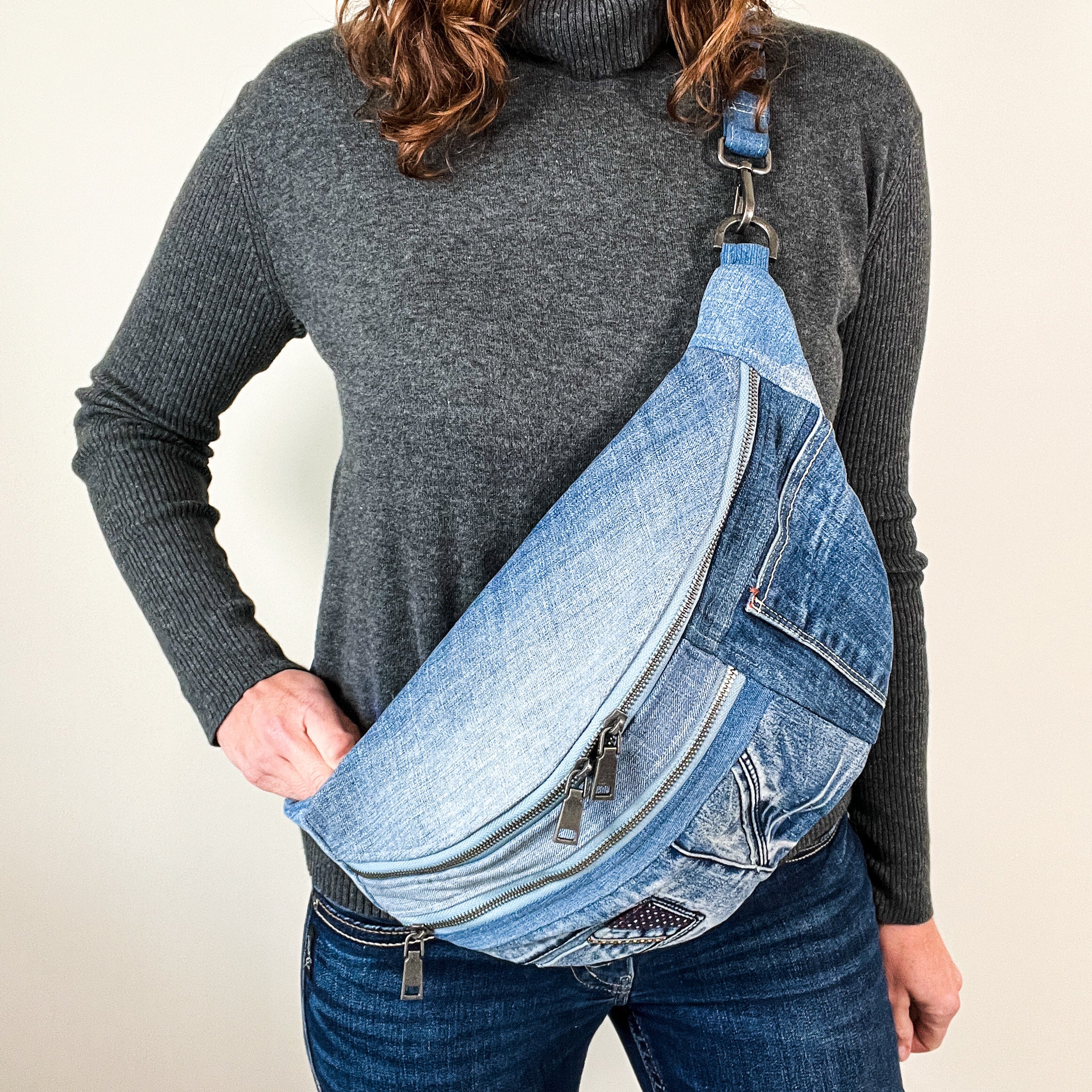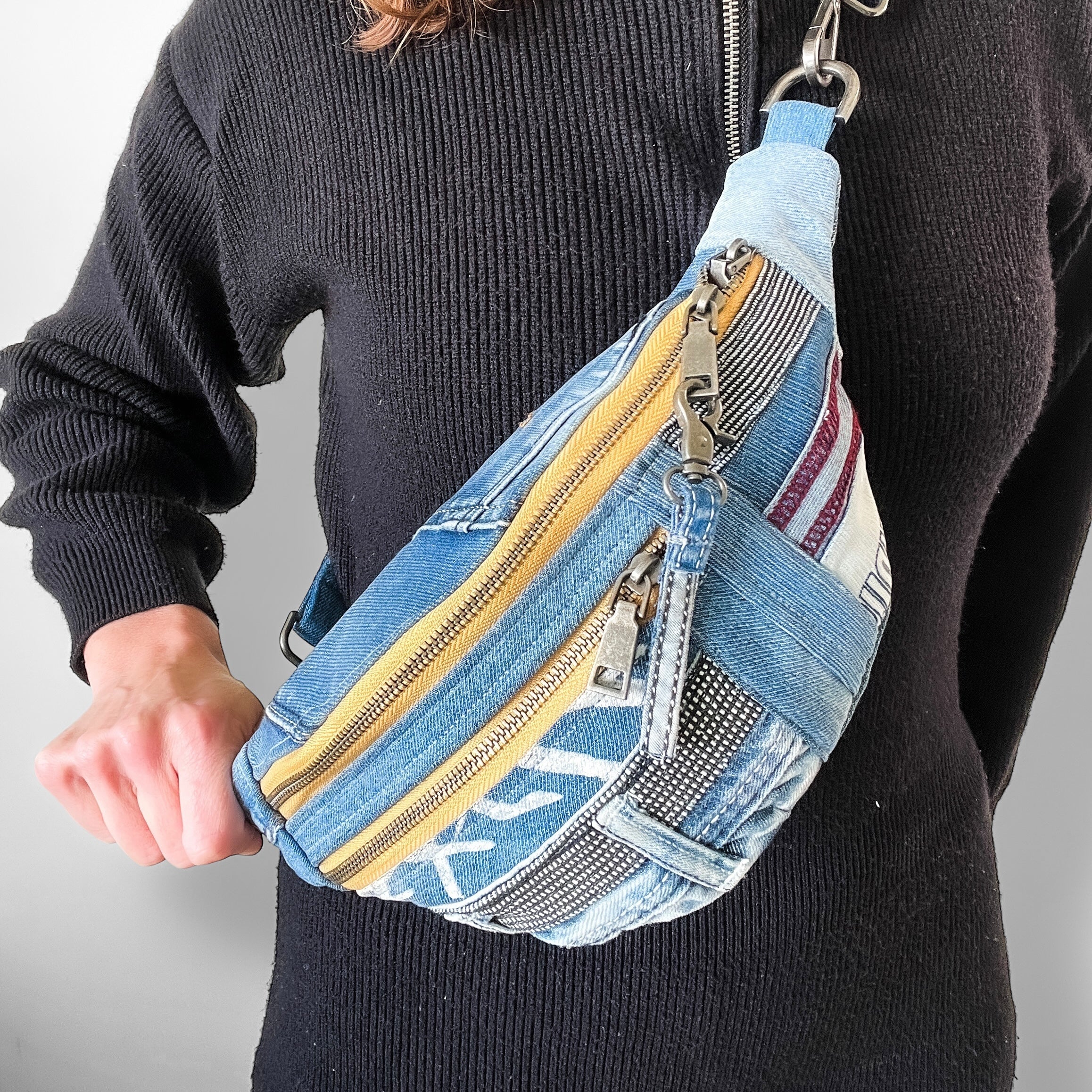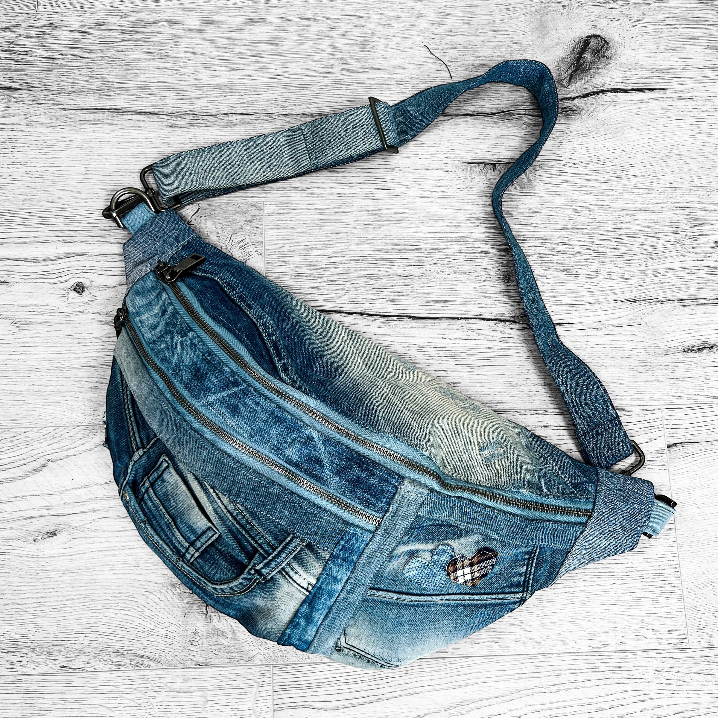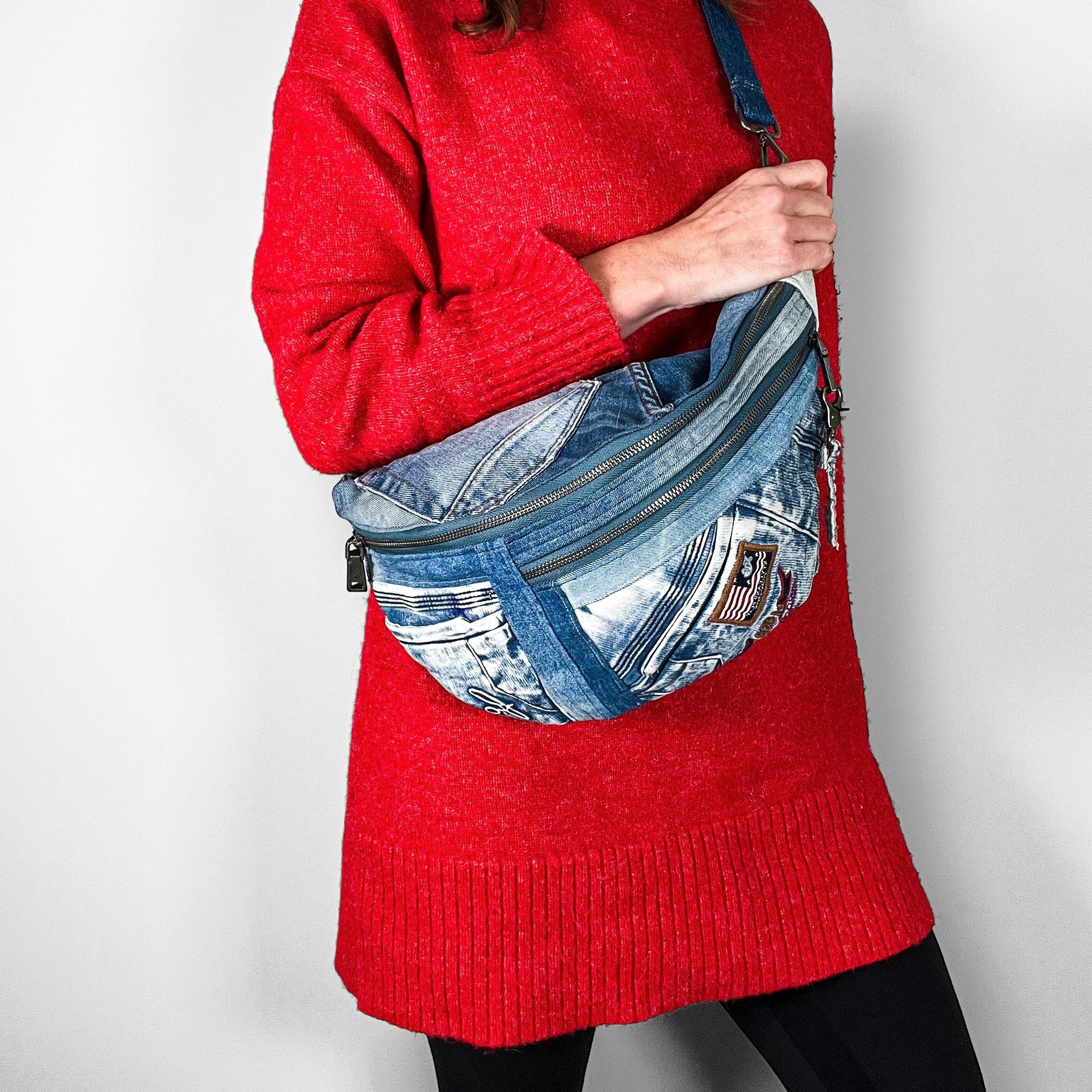 Check out our upcycled denim bag collection. Sling bags. Crossbody bags.