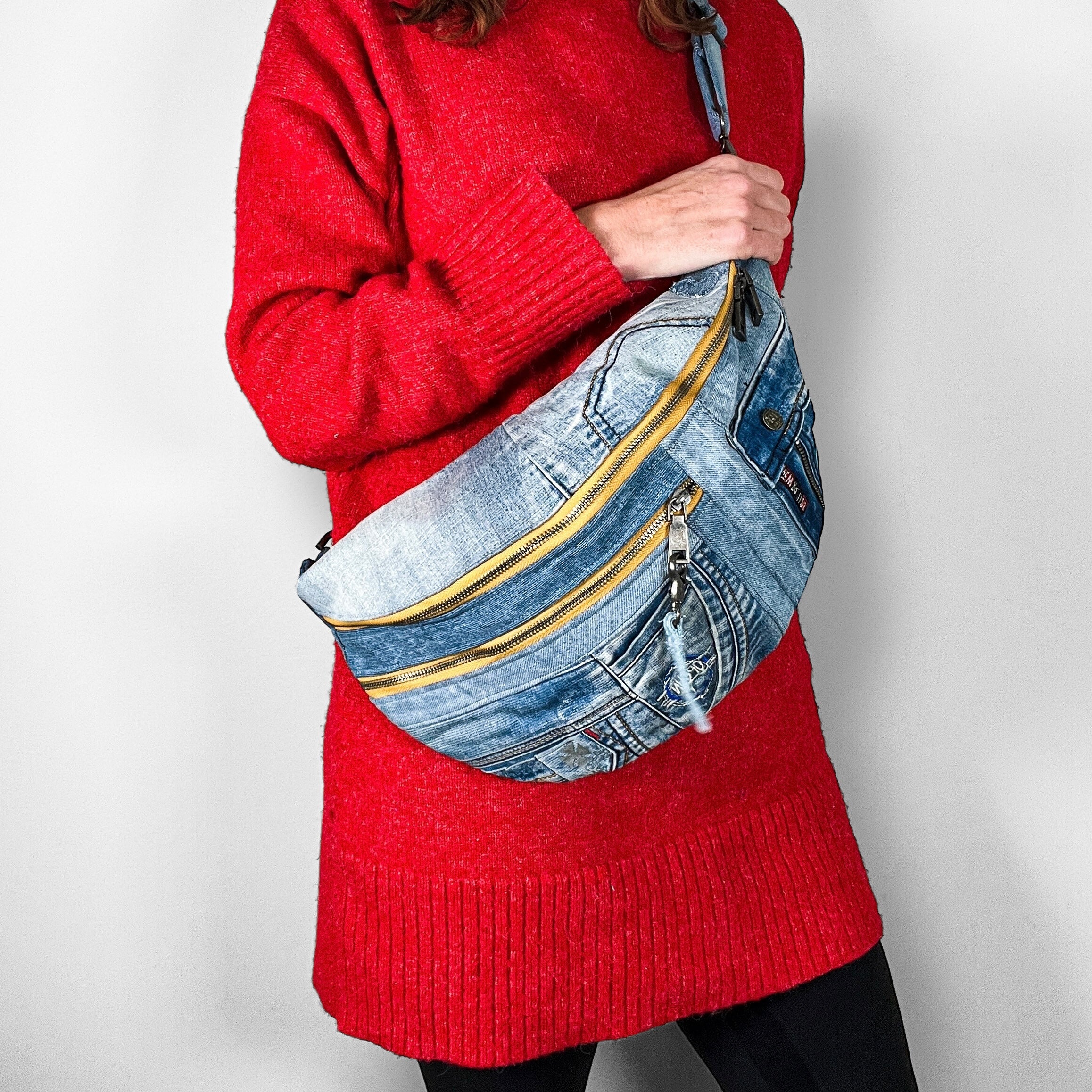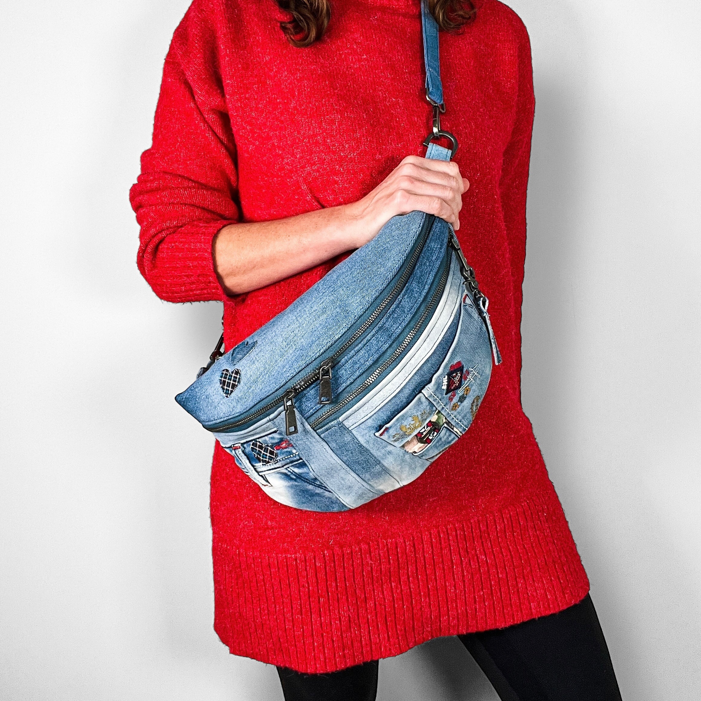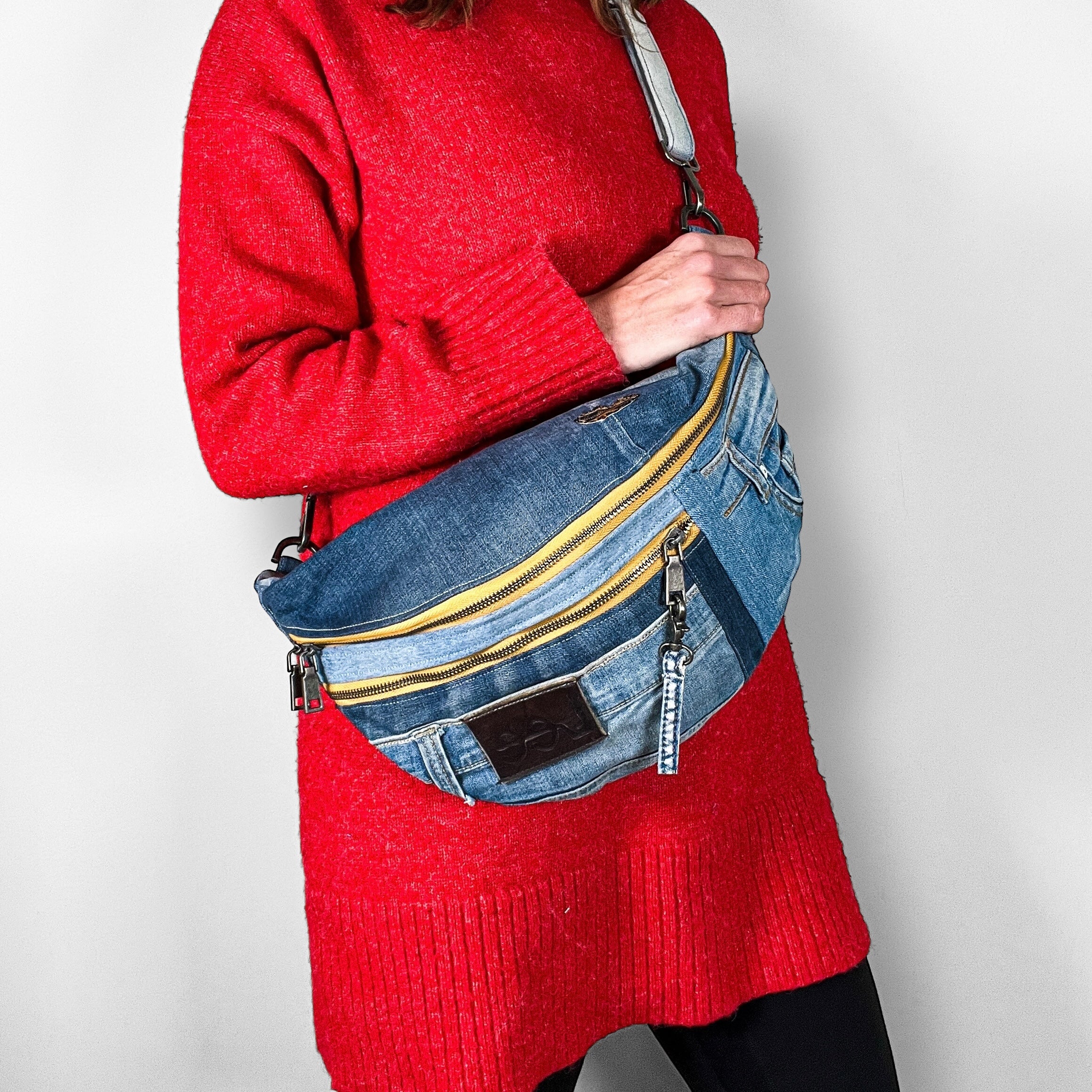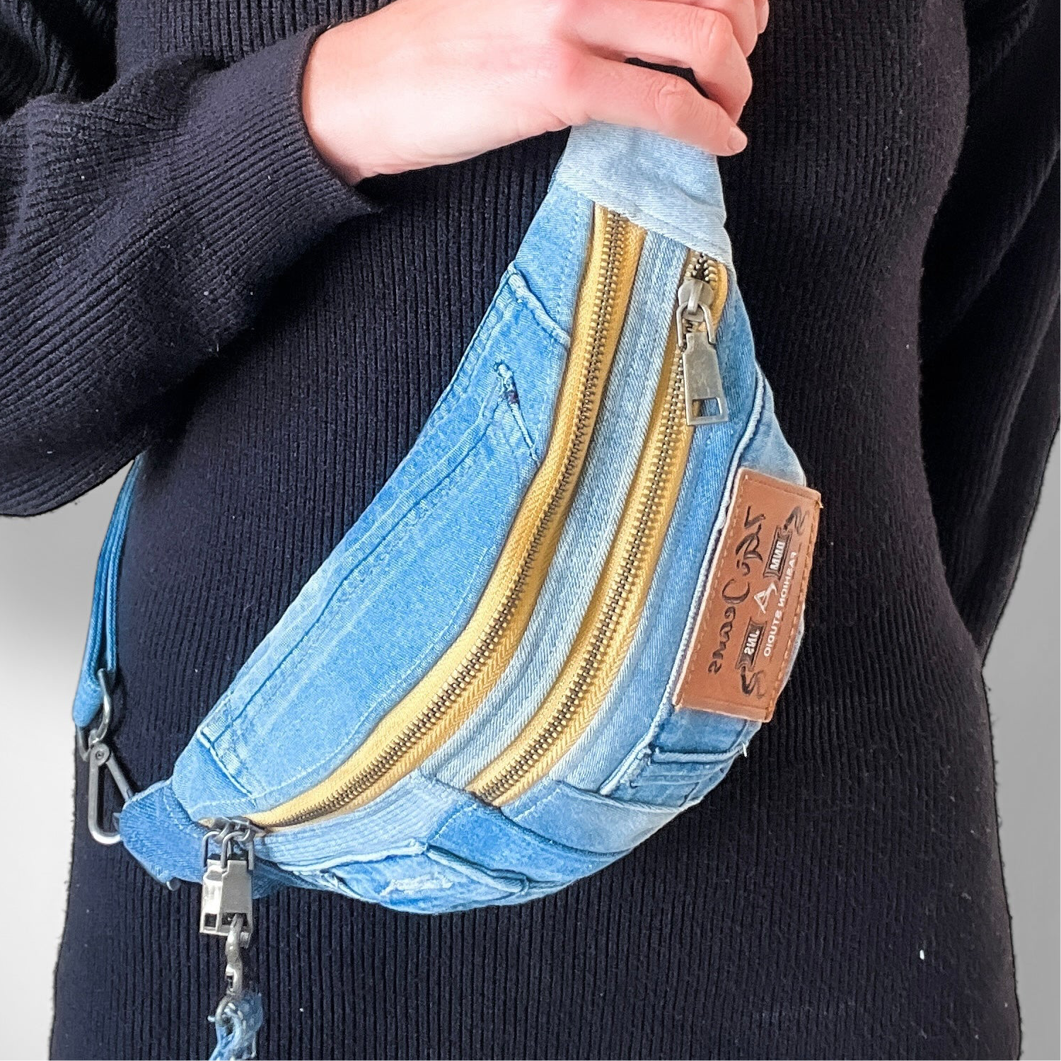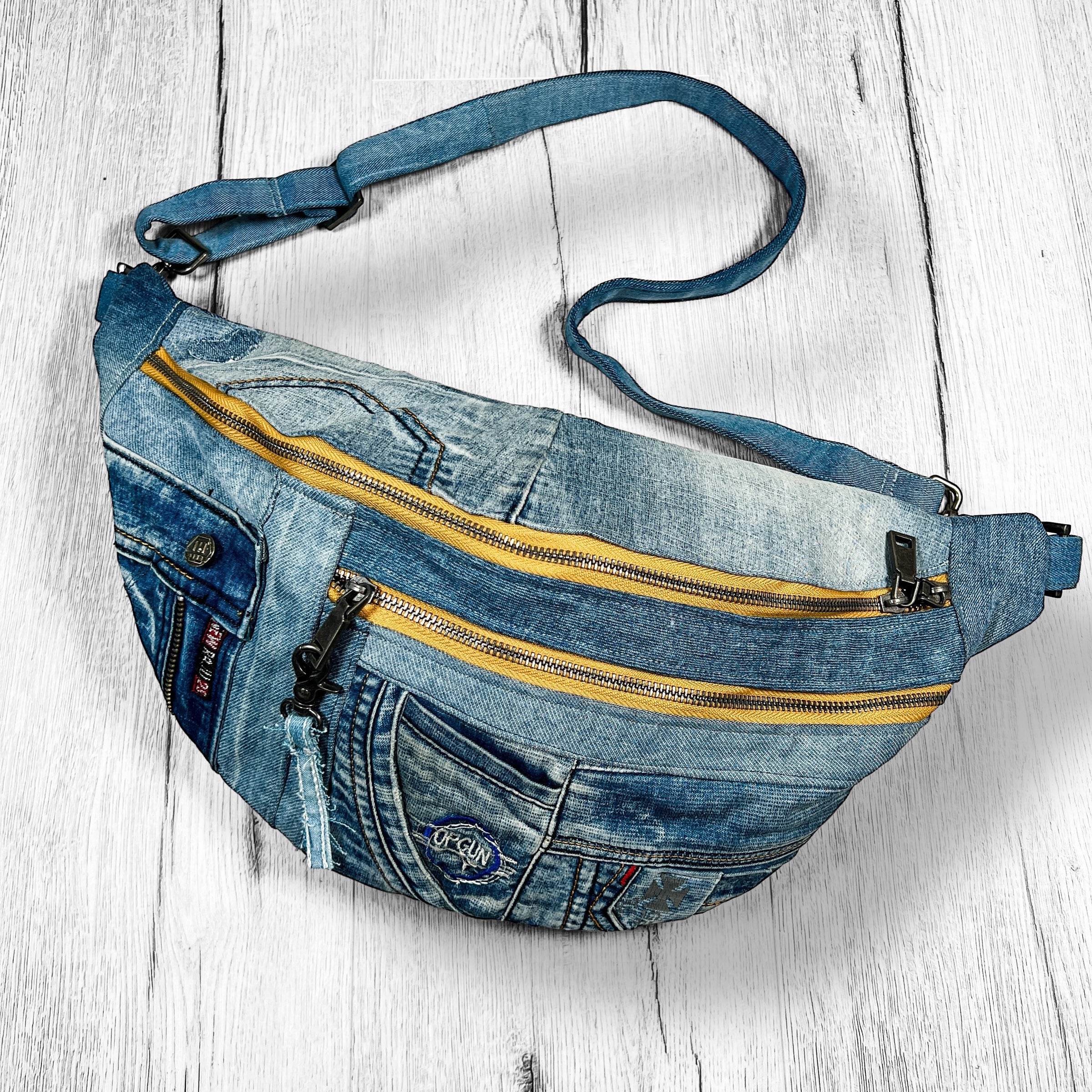 Check out our upcycled denim bag collection. Sling bags. Crossbody bags.