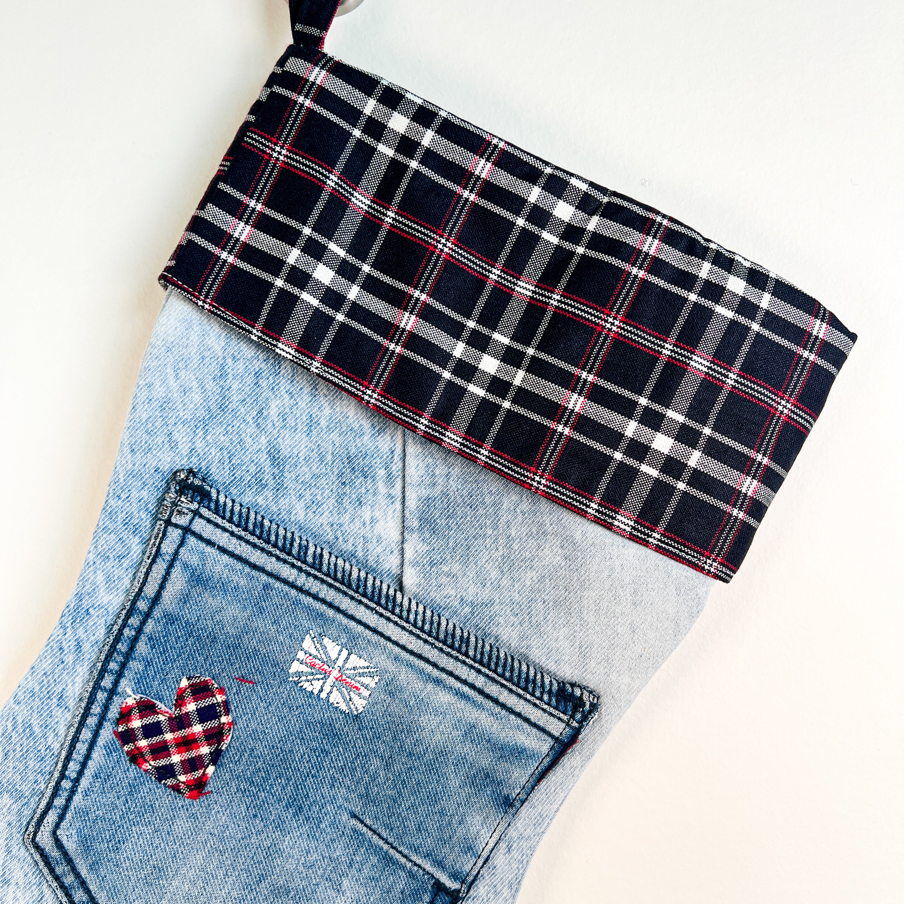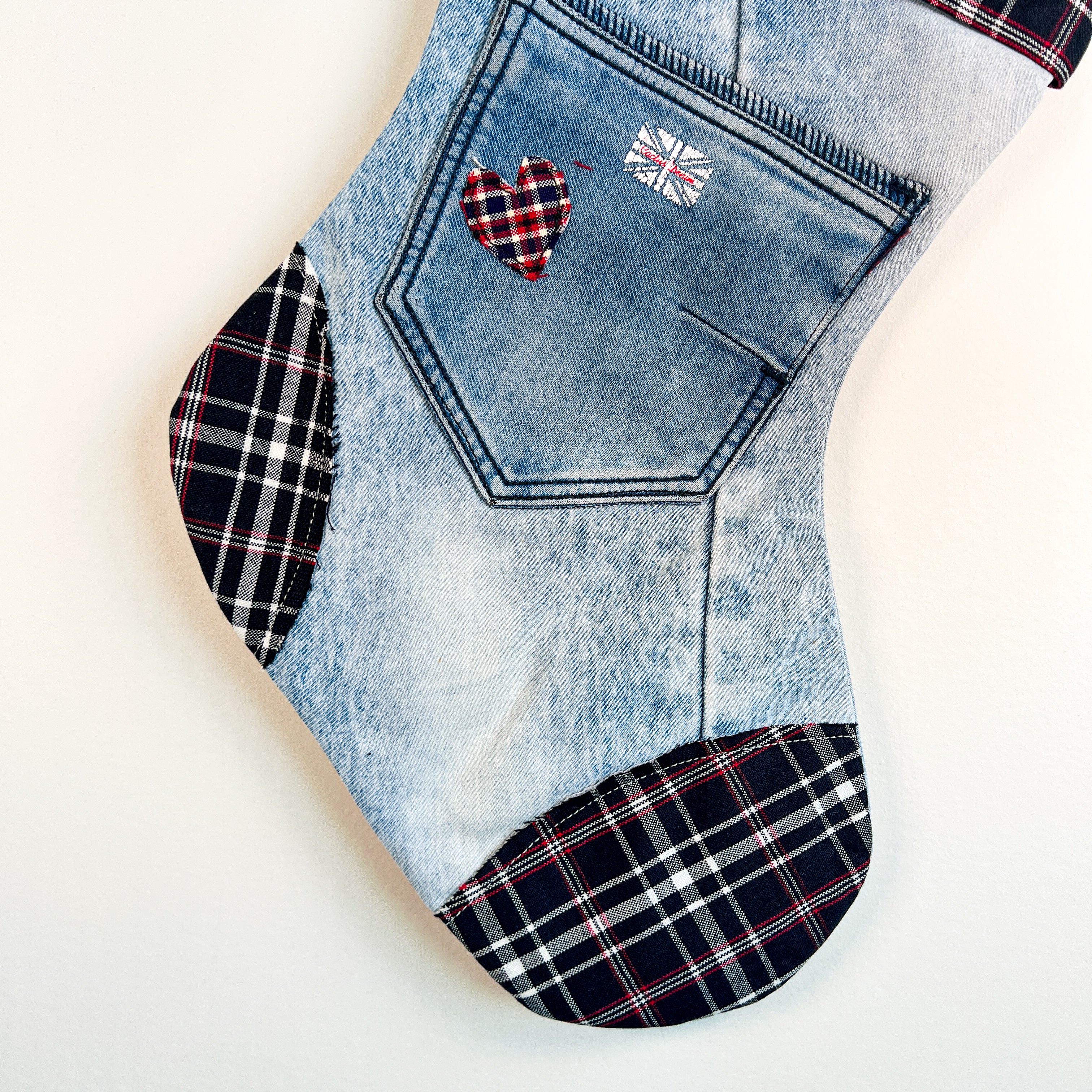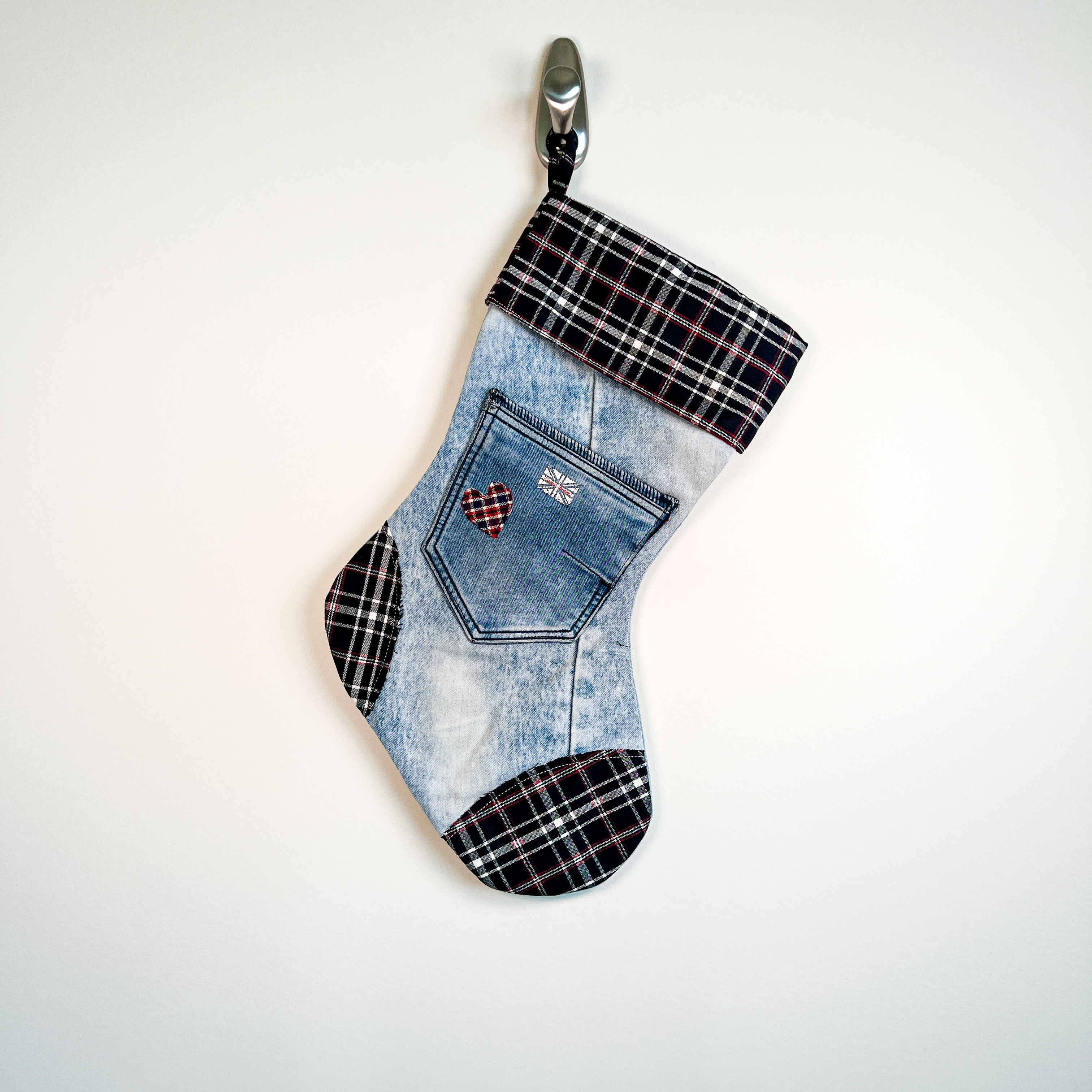 ♻️ Celebrate the holidays sustainably with our handmade upcycled Christmas stockings, crafted from repurposed denim and deadstock plaid fabrics. Each stocking is a one-of-a-kind piece, combining the rugged durability of denim with the classic, cozy charm of plaid. Perfect for adding a rustic, eco-friendly touch to your holiday decor, these stockings are designed with both style and sustainability in mind.