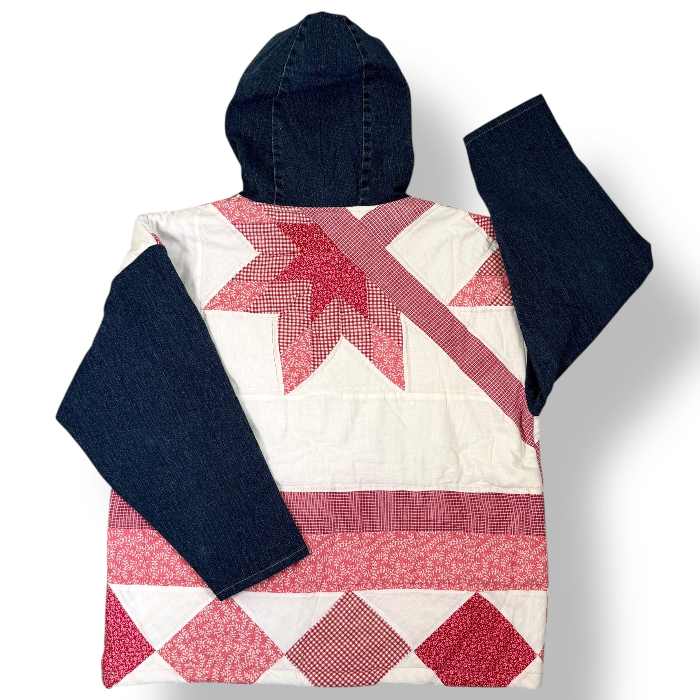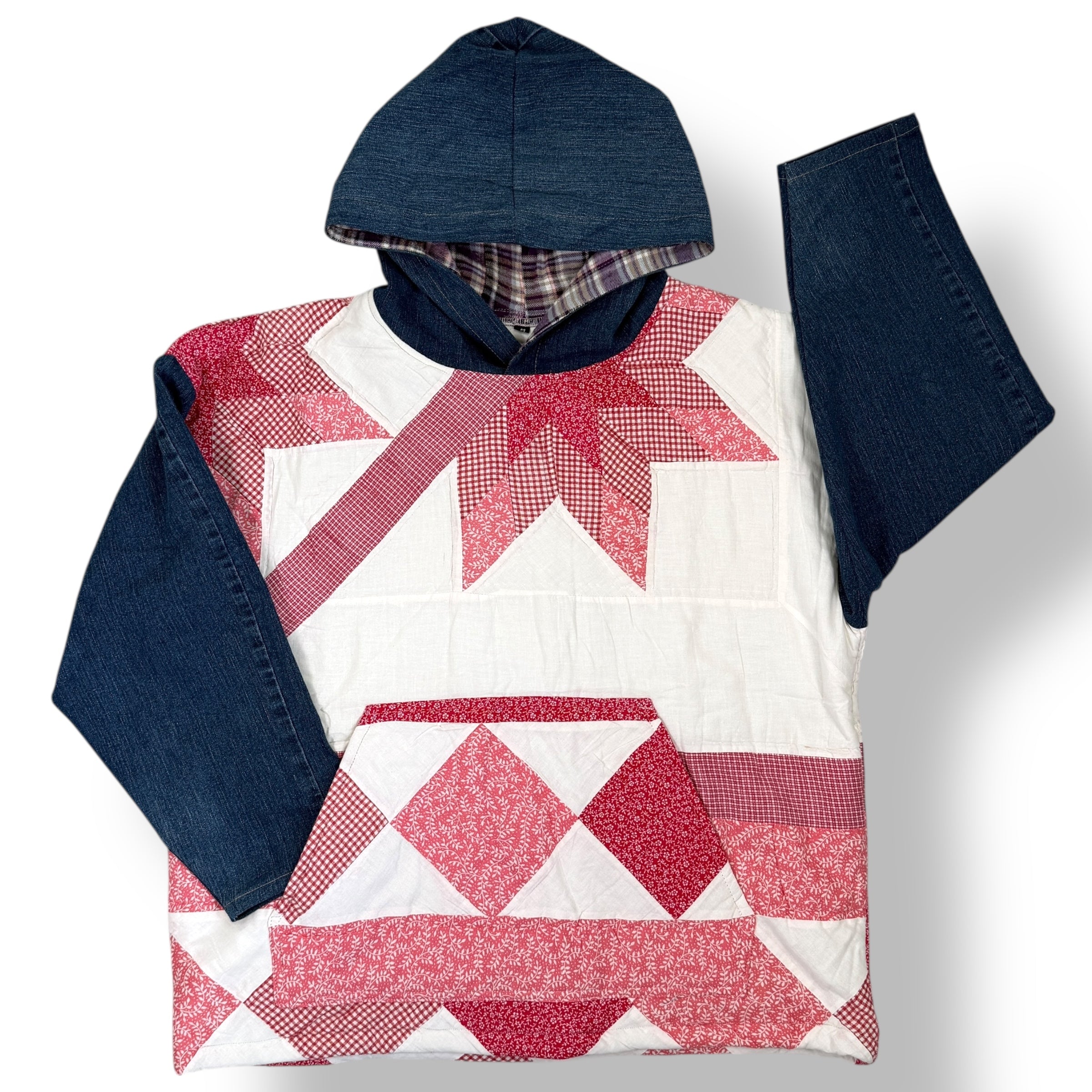 Stay stylish and sustainable with our one-of-a-kind Upcycled Denim Blanket Hoodies from 100% secondhand textiles. Upcycled clothing. Denim Sleeve. Blanket body. Rework vintage.