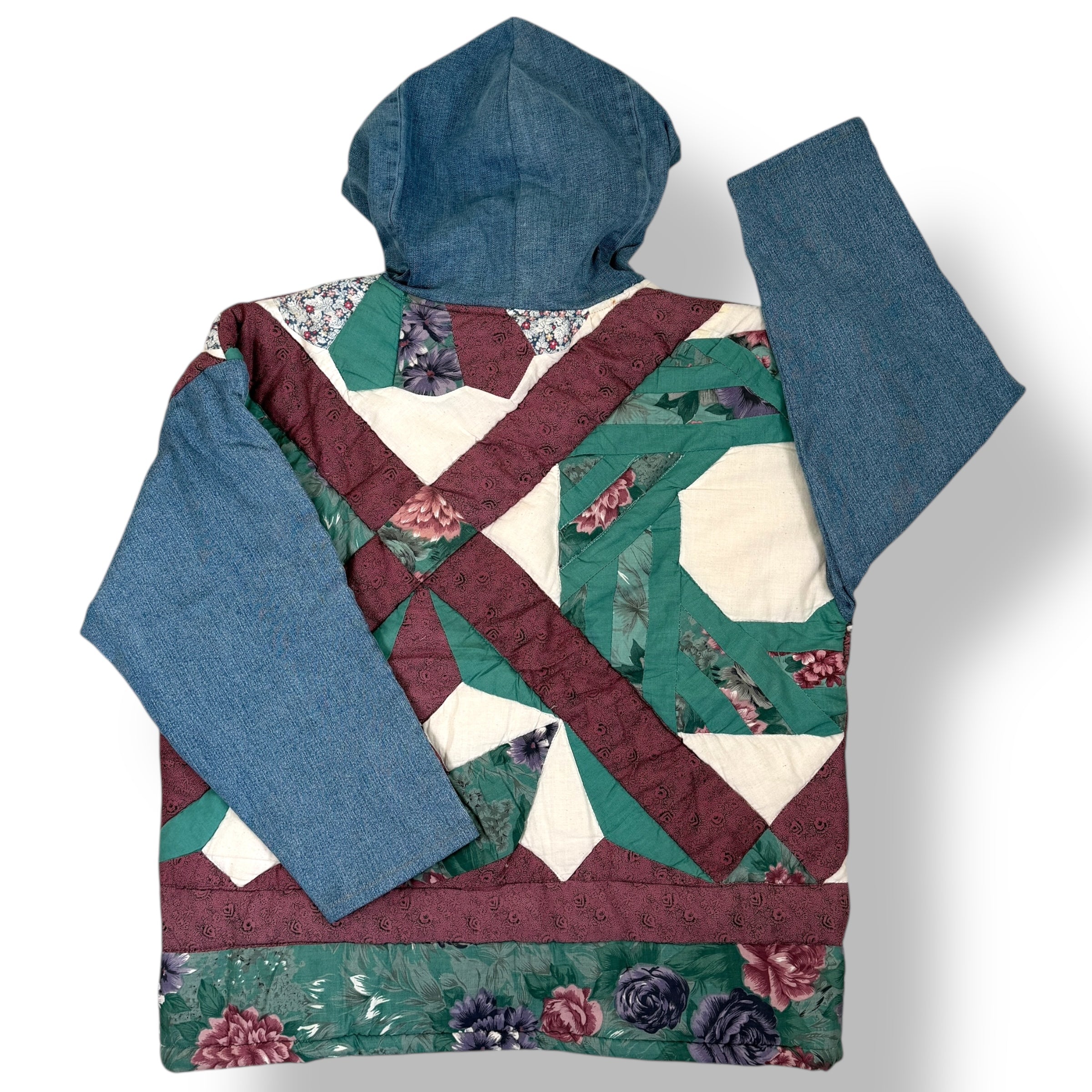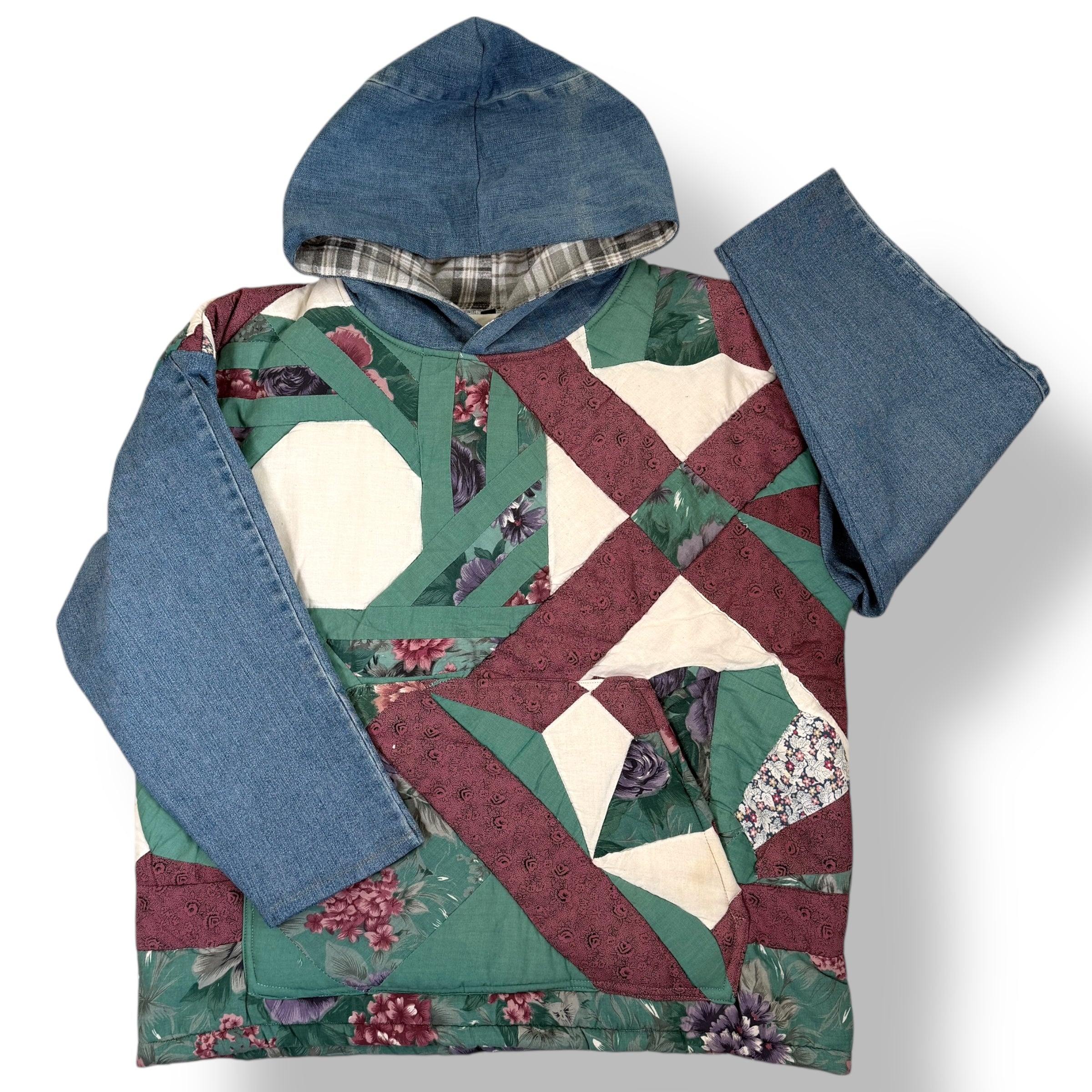 Stay stylish and sustainable with our one-of-a-kind Upcycled Denim Blanket Hoodies from 100% secondhand textiles. Upcycled clothing. Denim Sleeve. Blanket body. Rework vintage.