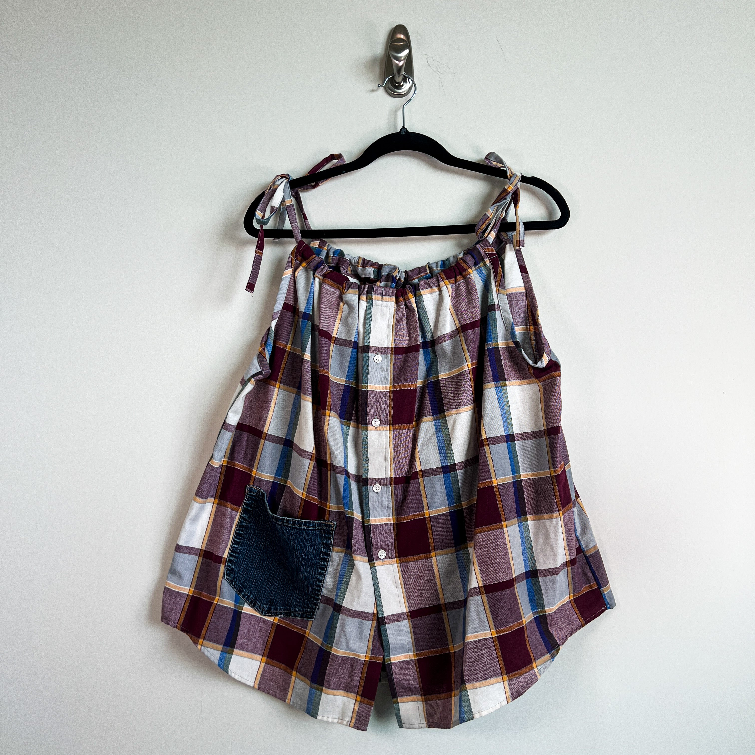 Handmade from second-hand dress shirts, the Re:shirt is a one-of-a-kind piece that brings new life to pre-loved textiles. Each shirt is unique, making it a perfect fit for those who value slow fashion and upcycled clothing.