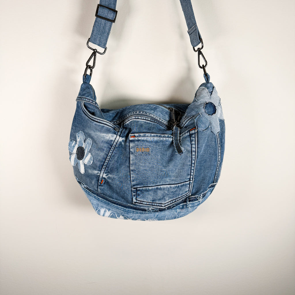 Carry it all—sustainably. This oversized, slouchy crossbody bag is handmade from reclaimed denim, giving secondhand textiles a fresh new life. Every bag is one-of-a-kind, reducing textile waste while keeping your look effortlessly cool.