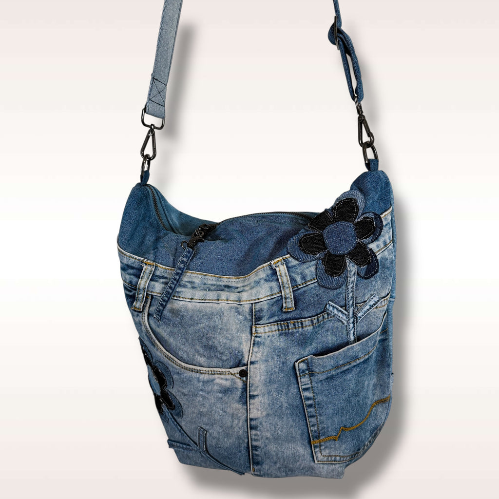 Carry it all—sustainably. This oversized, slouchy crossbody bag is handmade from reclaimed denim, giving secondhand textiles a fresh new life. Every bag is one-of-a-kind, reducing textile waste while keeping your look effortlessly cool.