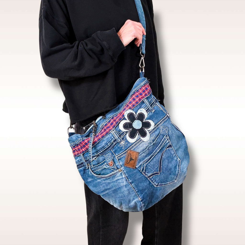 Carry it all—sustainably. This oversized, slouchy crossbody bag is handmade from reclaimed denim, giving secondhand textiles a fresh new life. Every bag is one-of-a-kind, reducing textile waste while keeping your look effortlessly cool.