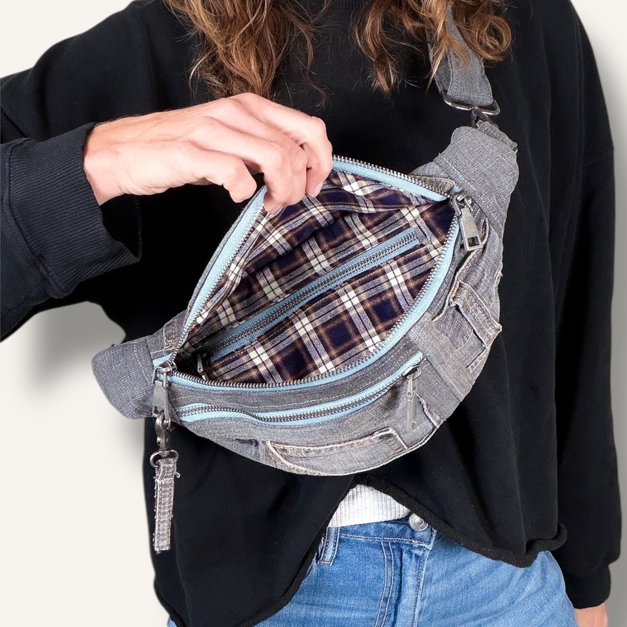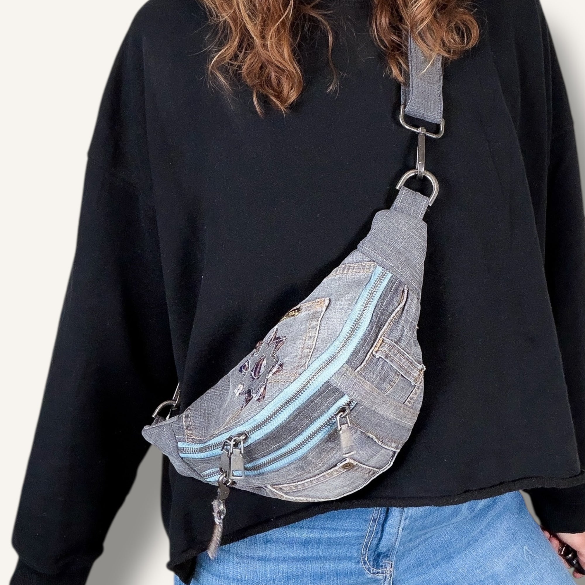 Carry sustainability in style with our handmade Upcycled Denim Sling Bag! Crafted from repurposed denim, this one-of-a-kind bag combines durability with a trendy, casual look. Designed for everyday use, it features a comfortable and adjustable crossbody strap, a spacious interior, and unique patchwork details that make each piece truly special. Perfect for eco-conscious fashion lovers.
