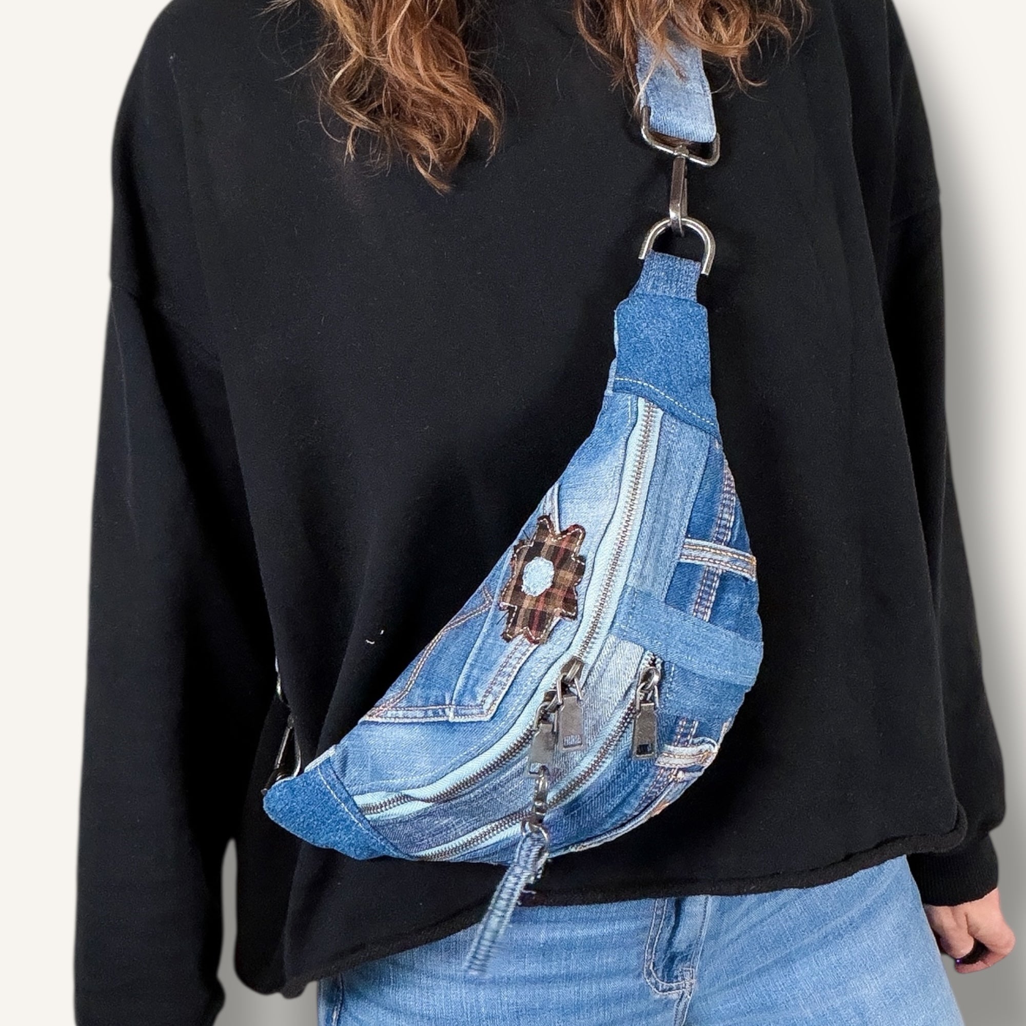 Carry sustainability in style with our handmade Upcycled Denim Sling Bag! Crafted from repurposed denim, this one-of-a-kind bag combines durability with a trendy, casual look. Designed for everyday use, it features a comfortable and adjustable crossbody strap, spacious interior, and unique patchwork details that make each piece truly special. Perfect for eco-conscious fashion lovers.